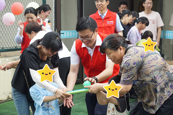 志愿者們在公司本部組織開展了兒童圖書捐贈活動,大家踴躍參與,紛紛捐出家里的兒童繪本、科普讀物等,并在書本的扉頁寫上了對思語兒童們最真誠的祝福和期盼。在合肥思語康復中心,志愿者們為孩子們帶來了豐富多彩的圖書、禮物和學習生活用品,并與孩子們一起迎接“六一”兒童節的到來。在志愿者和老師們的精心布置下,康復中心的節日“氛圍感”逐漸拉滿,孩子們眼中也閃爍著期待與興奮。志愿者們陪同孩子們開展了拔河比賽、搶椅子、兔子跑得快、一起來過河等小游戲。