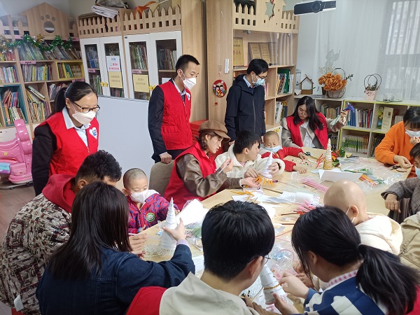 11月23日,東華科技項目管理部黨支部組織志愿者前往“口罩天使愛心小屋”看望白血病兒童,與小朋友們一起開展手工制作活動。
