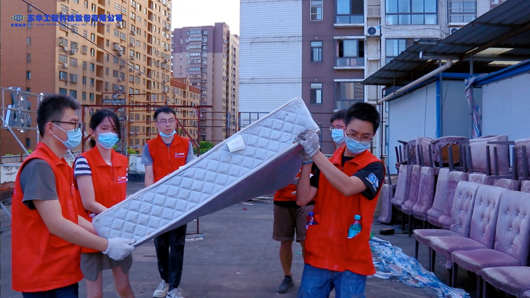 為弘揚志愿服務精神、傳遞愛與力量,近日,東華科技藍鴿志愿服務隊開展了助力“口罩天使中途宿舍”搬遷改造志愿活動。由于搬遷改造工作時間緊、任務重,志愿者們利用周末時間,頂著40度的高溫,為“口罩天使”們能早日遷往新居揮灑自己的汗水。新址曾先后作為火鍋店和主題酒店使用,現場遺留了大量的廢舊物品,志愿者們“手搬肩扛”,一趟趟往返于樓層之間。一雙雙扛起就走的手、一次次上下齊心的搬運、一個個扛起物品匆匆的身影,充分詮釋了東華科技“不怕苦、不怕累、不怕臟、認真負責”的工作作風。東華科技土建室技術副總監姚大元作為志愿者接受了安徽電視臺的采訪:“能為社會提供力所能及的幫助,是我們應該做的,是我們東華人更是團員青年應該做的,傳遞愛與溫暖,腳步不停,初心不變。”