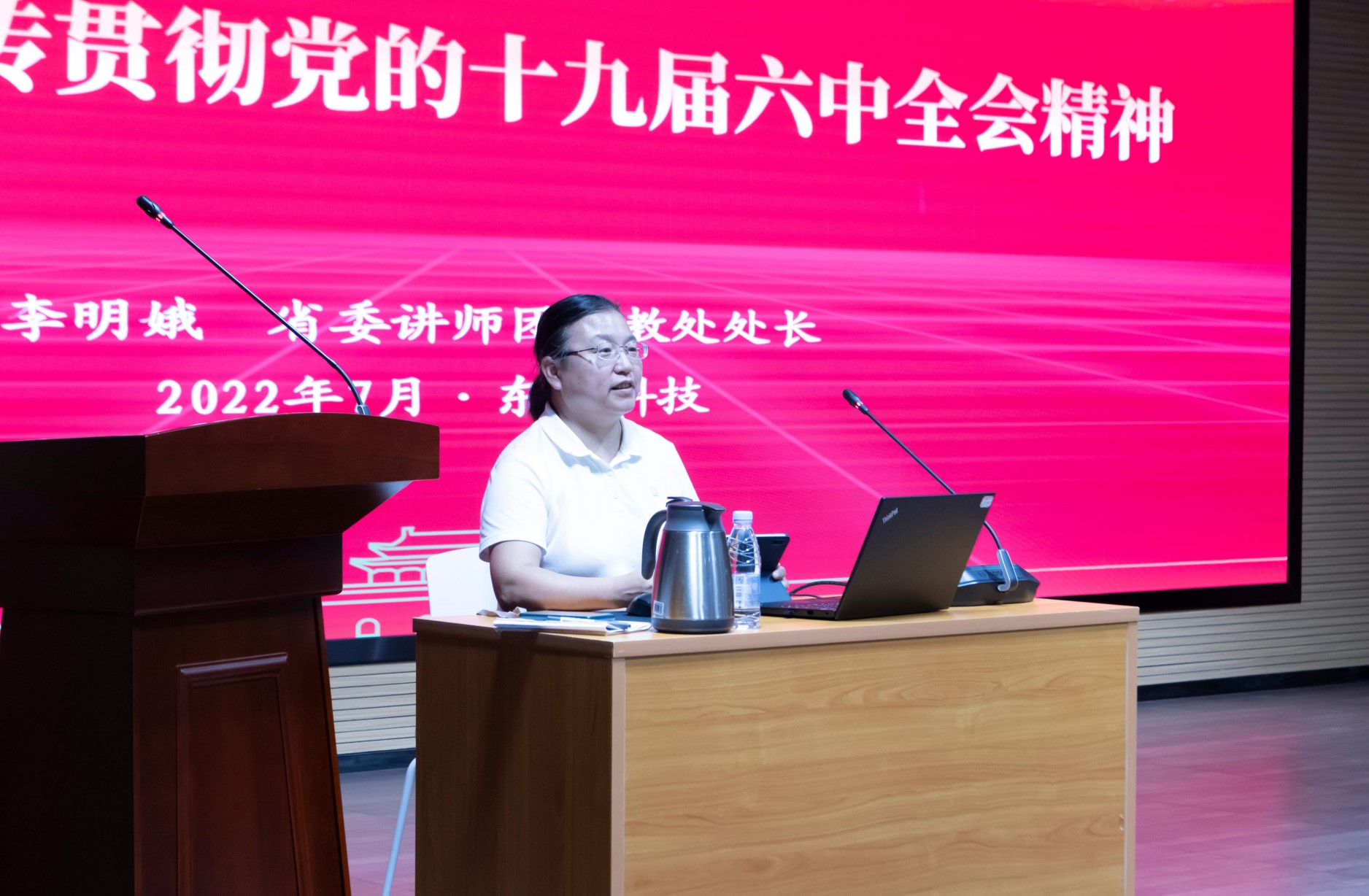李明娥以“巾幗心向黨、喜迎二十大”為主題,結(jié)合“強(qiáng)國(guó)復(fù)興有我”主題教育,就黨的十九屆六中全會(huì)精神進(jìn)行了宣講。她從黨的十九屆六中全會(huì)精神怎么學(xué)、怎么看,深刻認(rèn)識(shí)黨的百年奮斗的歷史經(jīng)驗(yàn)以及如何學(xué)習(xí)貫徹黨的十九屆六中全會(huì)精神四個(gè)方面進(jìn)行授課,幫助大家更加深入、準(zhǔn)確、系統(tǒng)學(xué)習(xí)領(lǐng)會(huì)全會(huì)精神,開(kāi)拓思維,凝聚共識(shí)。