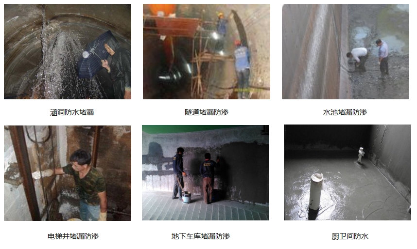 ◎工業與民用建筑地下室的修復處理及滲漏修補,建筑物屋面及內外墻面滲漏的修復, 各類水池、人防工程、隧道、糧倉、衛生間、廚房、廠房、封閉陽臺的防水防滲;
